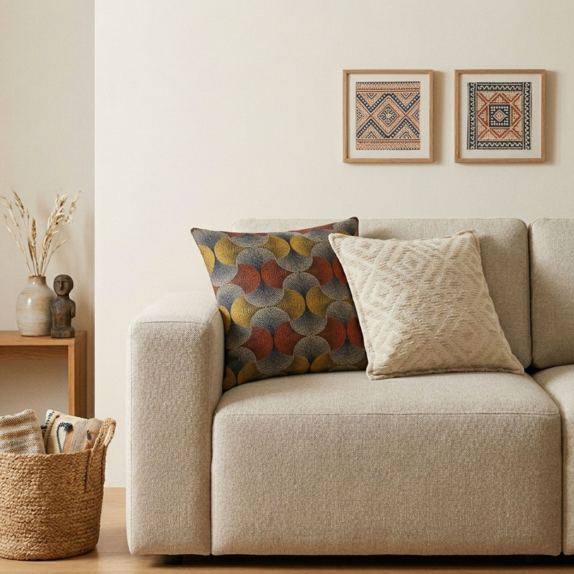 Aporta un toque retro audaz a tu espacio con la funda de cojín clásica – Urban Swirl. Con patrones circulares en capas en tonos mostaza cálido, óxido y gris, este diseño aporta carácter de inmediato y resulta fácil de combinar.