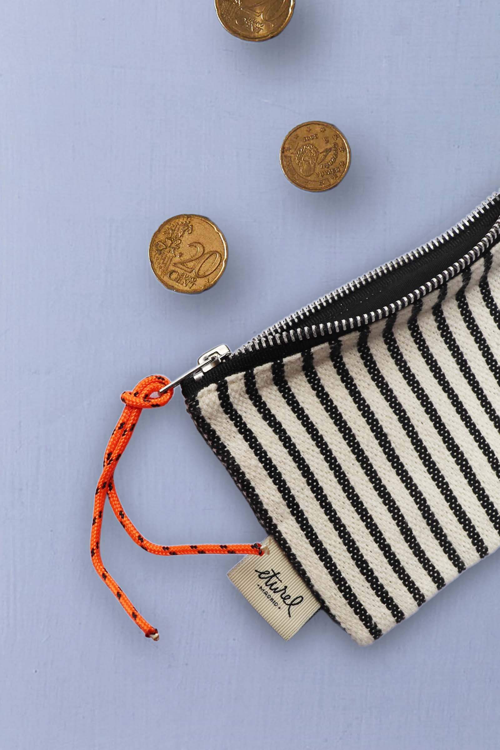 Monedero loneta estribera blanco y negro