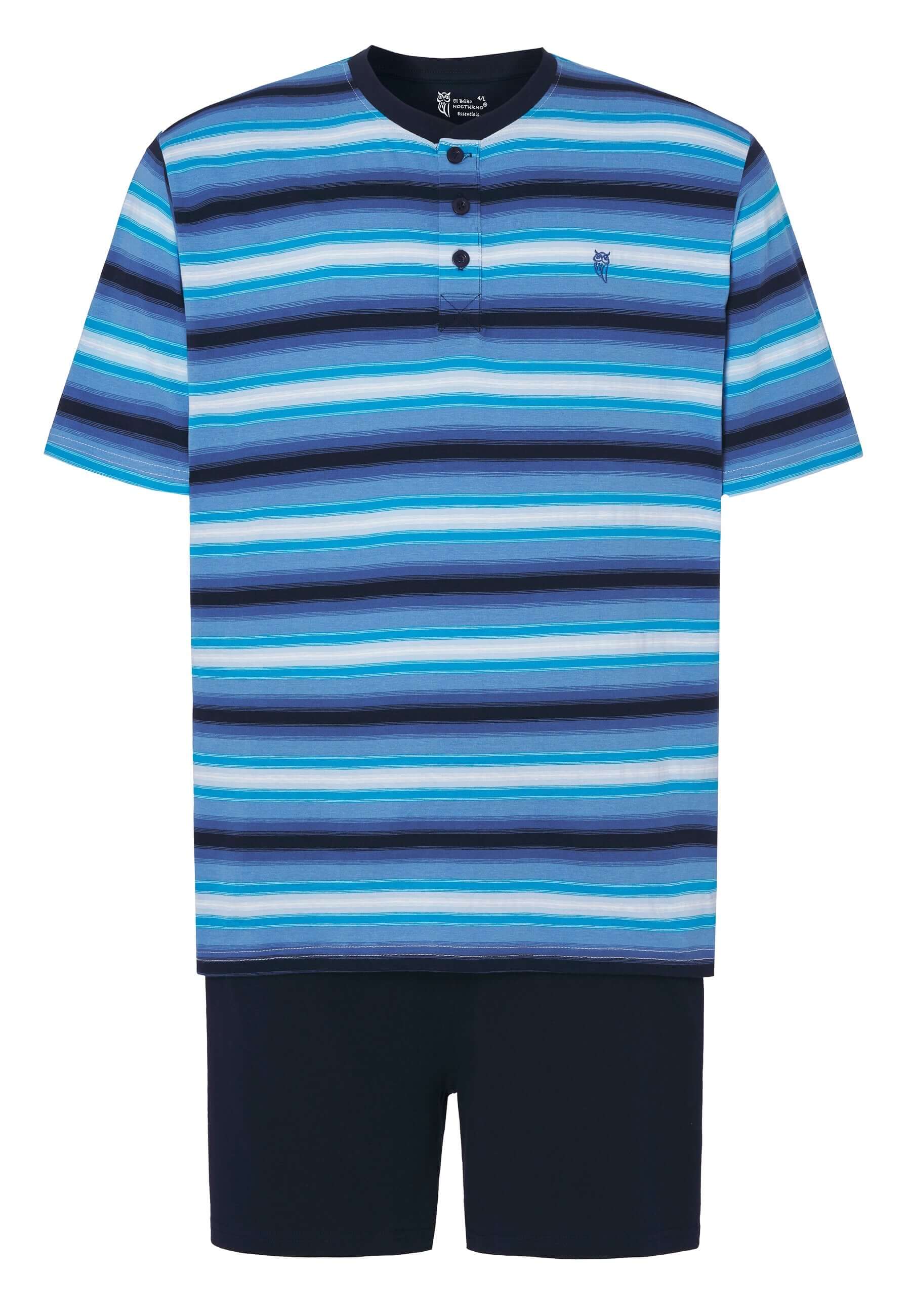 Pijama Hombre Verano Corto Tapeta Algodón Punto Rayas - Azul 3036_33