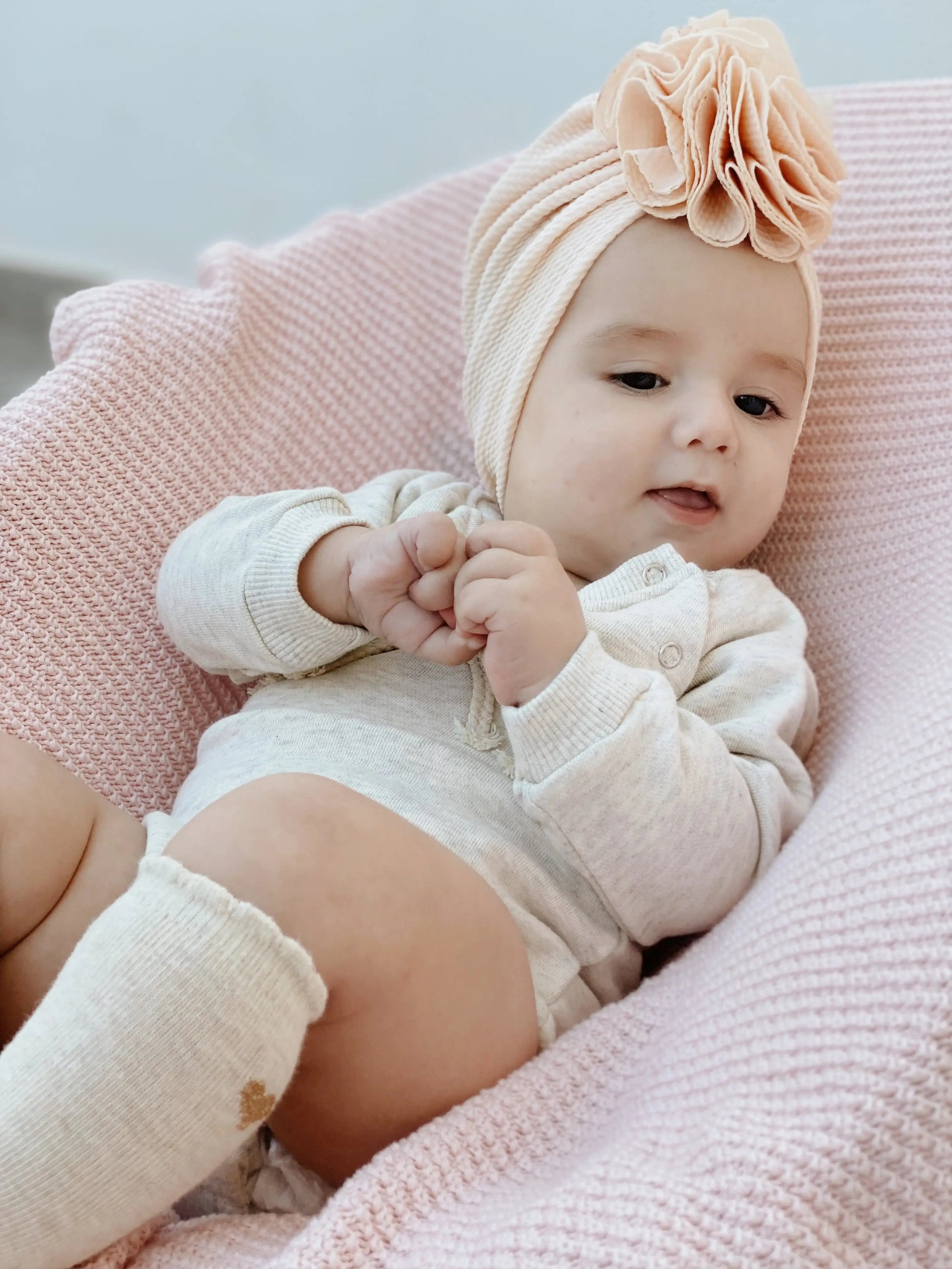 Los Turbantes además de hacer que sus princesas se vean preciosas sirven para recubrir la cabecita de nuestro bebé y protegerla del viento, sol y frío.